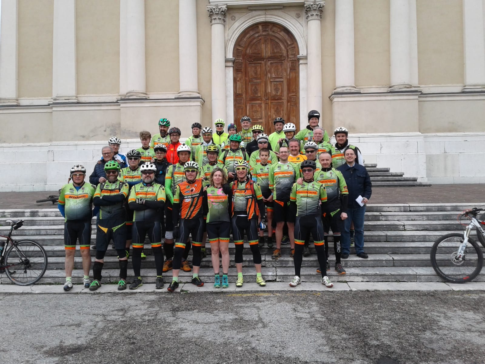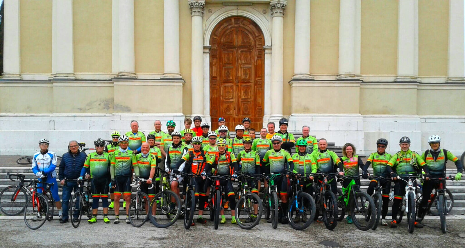 Sabato 6 Aprile si è svolta l’apertura ufficiale dell’anno ciclistico 2019 per tutti i 44 iscritti al gruppo. Nel primo pomeriggio la scalinata di fronte al Duomo in piazza a Castelgomberto ha visto la nutrita presenza di 35 soci ed è servita da apripista prima per la foto di gruppo e poi per la classica benedizione di buon auspicio impartita da don Alessandro. Seguendo la tabella di marcia il gruppo degli stradisti si è quindi involato per il classico “giro dei 60” mentre i rudi mtbikers si cimentavano nella “Gimbobike“, tutti felici di faticare pensando al premio che li attendeva all’arrivo.
