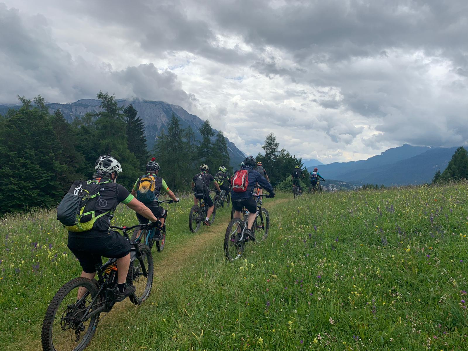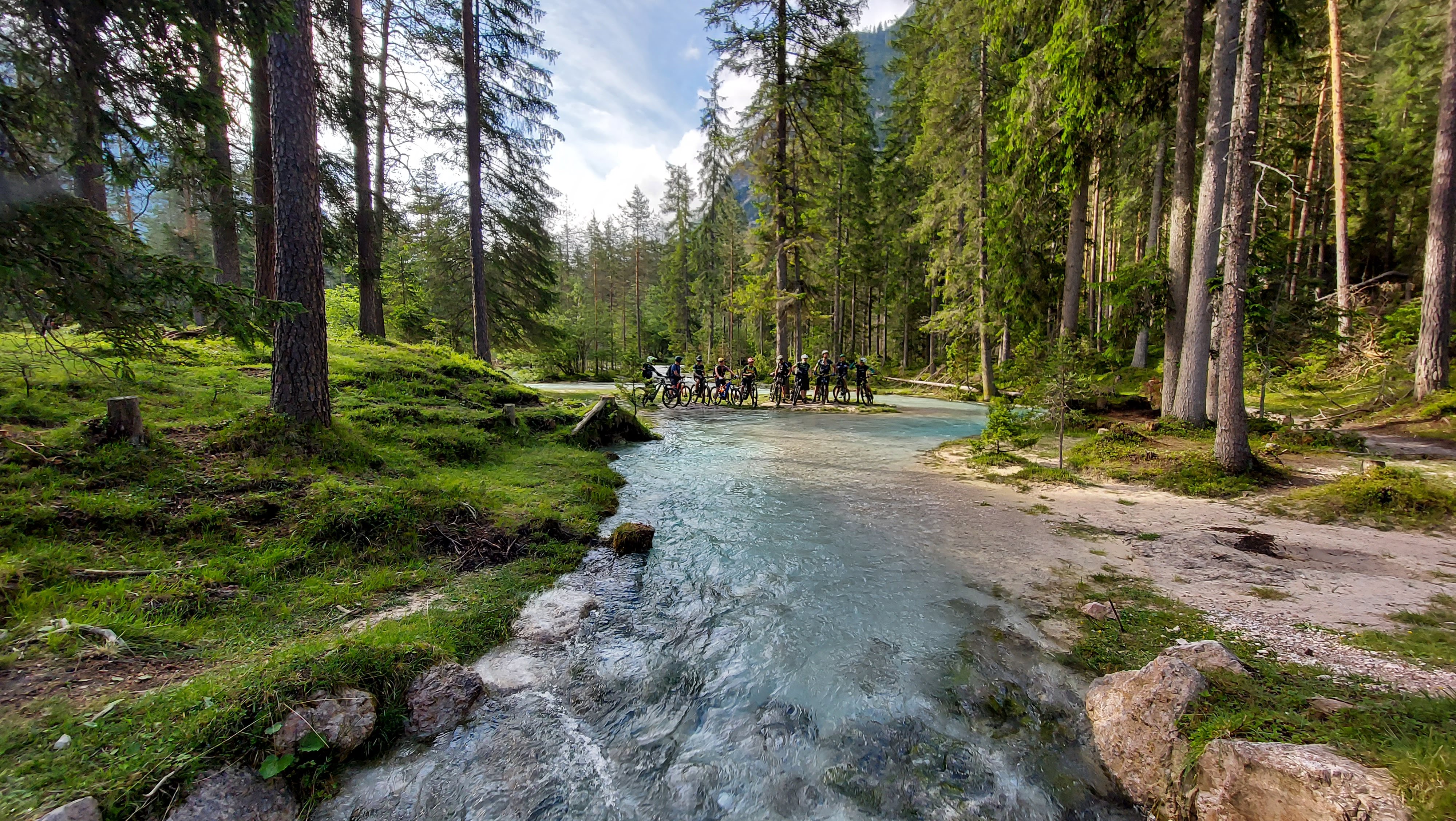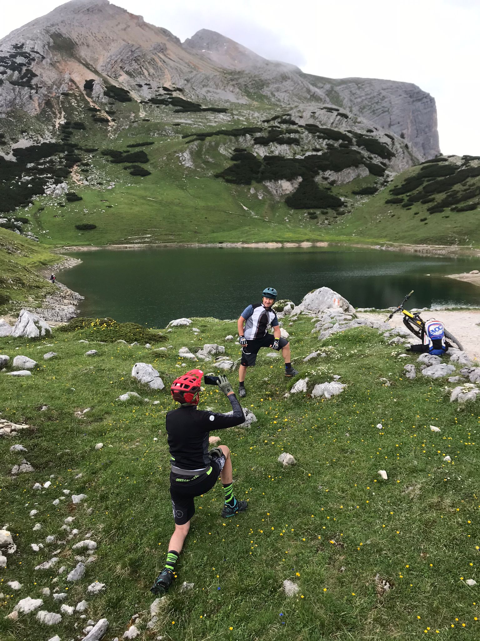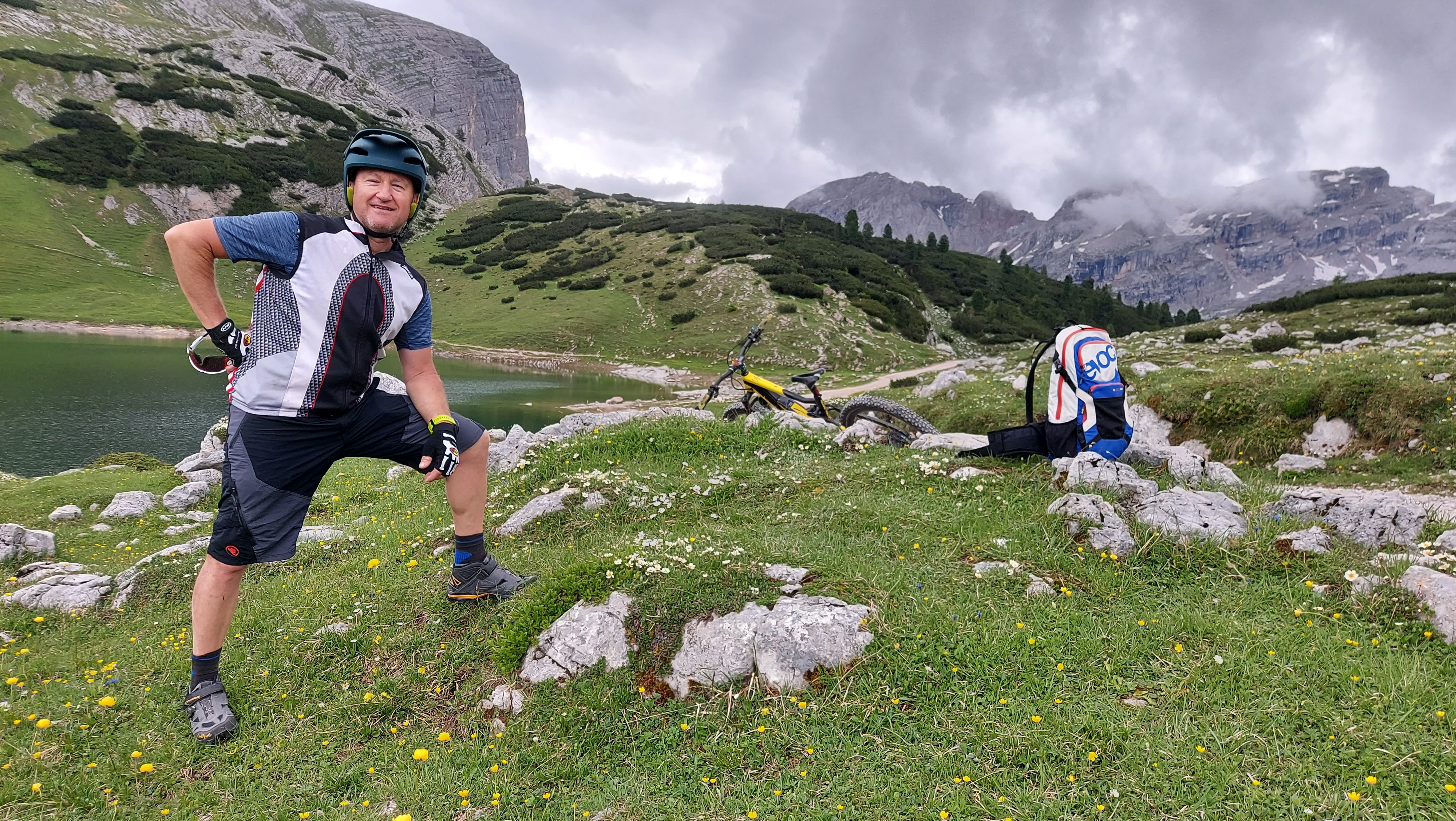 Per rendere il tutto più emozionante la “sfiga” ci mette lo zampino e inizialmente un biker ritorna anzitempo al riposo finale causa lievi problemi fisici poi risolti, affrontiamo la rottura di un cambio, sistemata brillantemente dai nostri meccanici e infine l’esaurimento di una batteria in salita, superata spingendo e trainando a turno lo sfortunato. Ciononostante scendiamo lungo il sentiero 120 e alla fine il lago di Misurina ci accoglie tutti felici.
