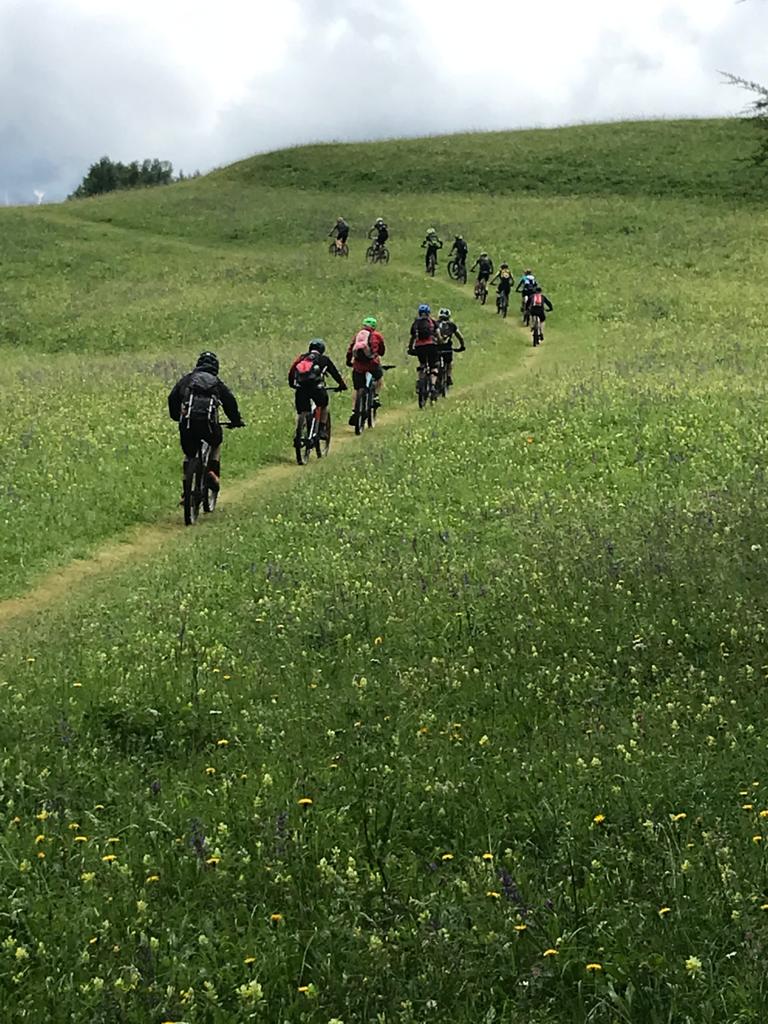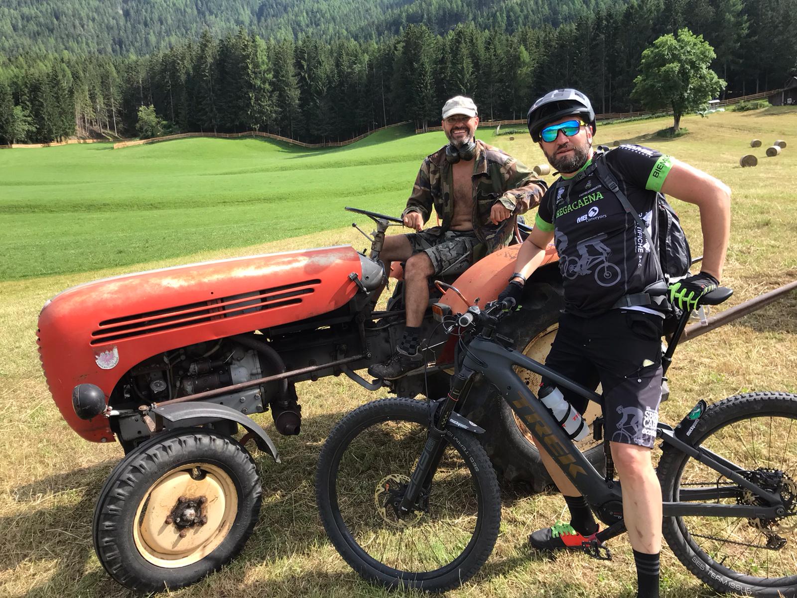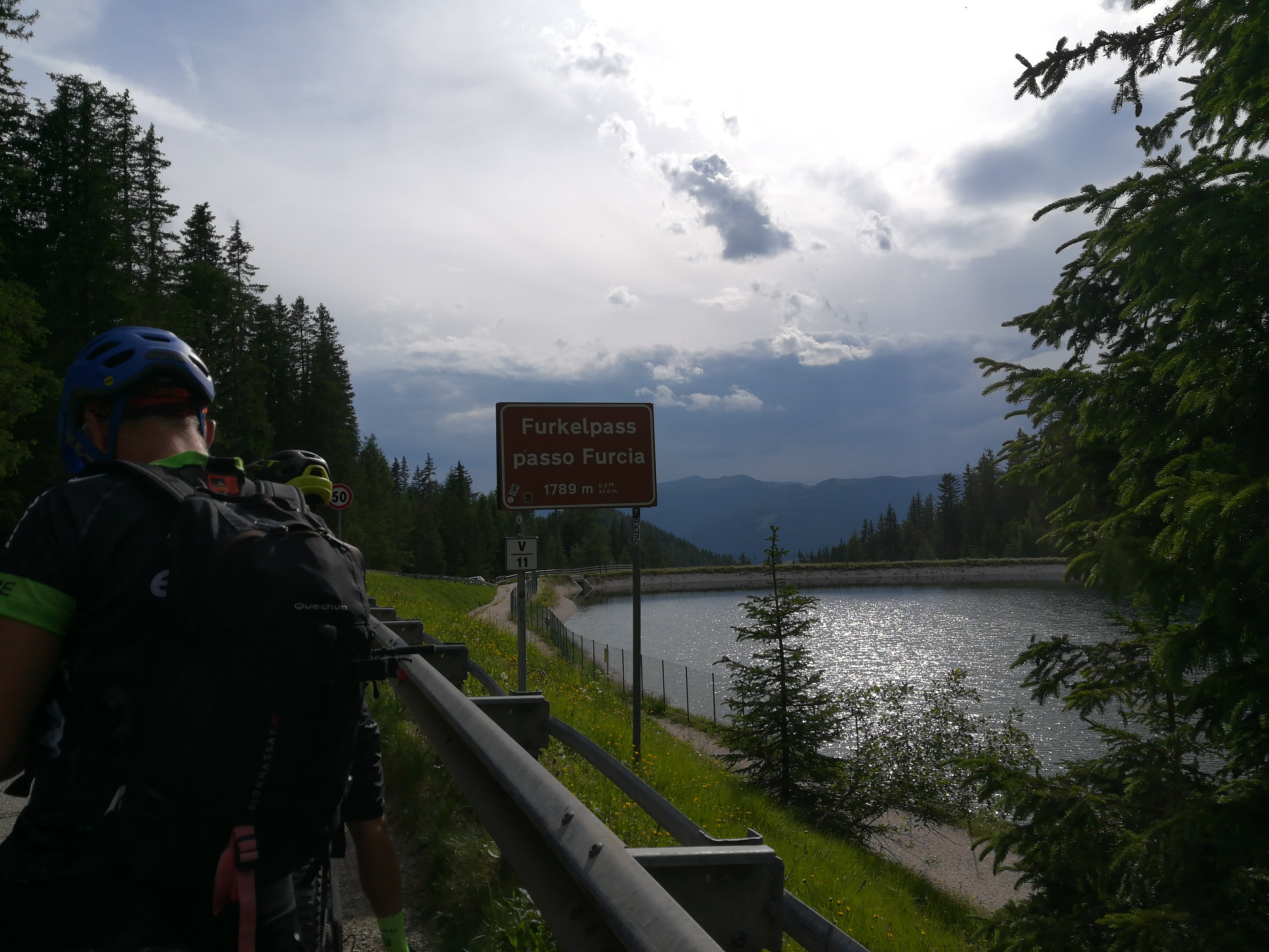 Dopo le foto di rito scendiamo e lungo la strada ci fermiamo a ricaricare uomini e bici prima di ripercorrere parte del sentiero fatto all’andata… e in discesa nel bosco è anche meglio!!! Proseguiamo fra prati e ciclabili con tratti di asfalto verso Valdaora per salire verso il passo della Furcia dove inizia la discesa che ci porta a San Vigilio di Marebbe. Preso possesso delle stanze parte il solito rito: doccia e birra in attesa della cena, nel bel mezzo della quale inizia a diluviare… la tappa finale non si prospetta nel migliore dei modi ma ci penseremo al mattino.