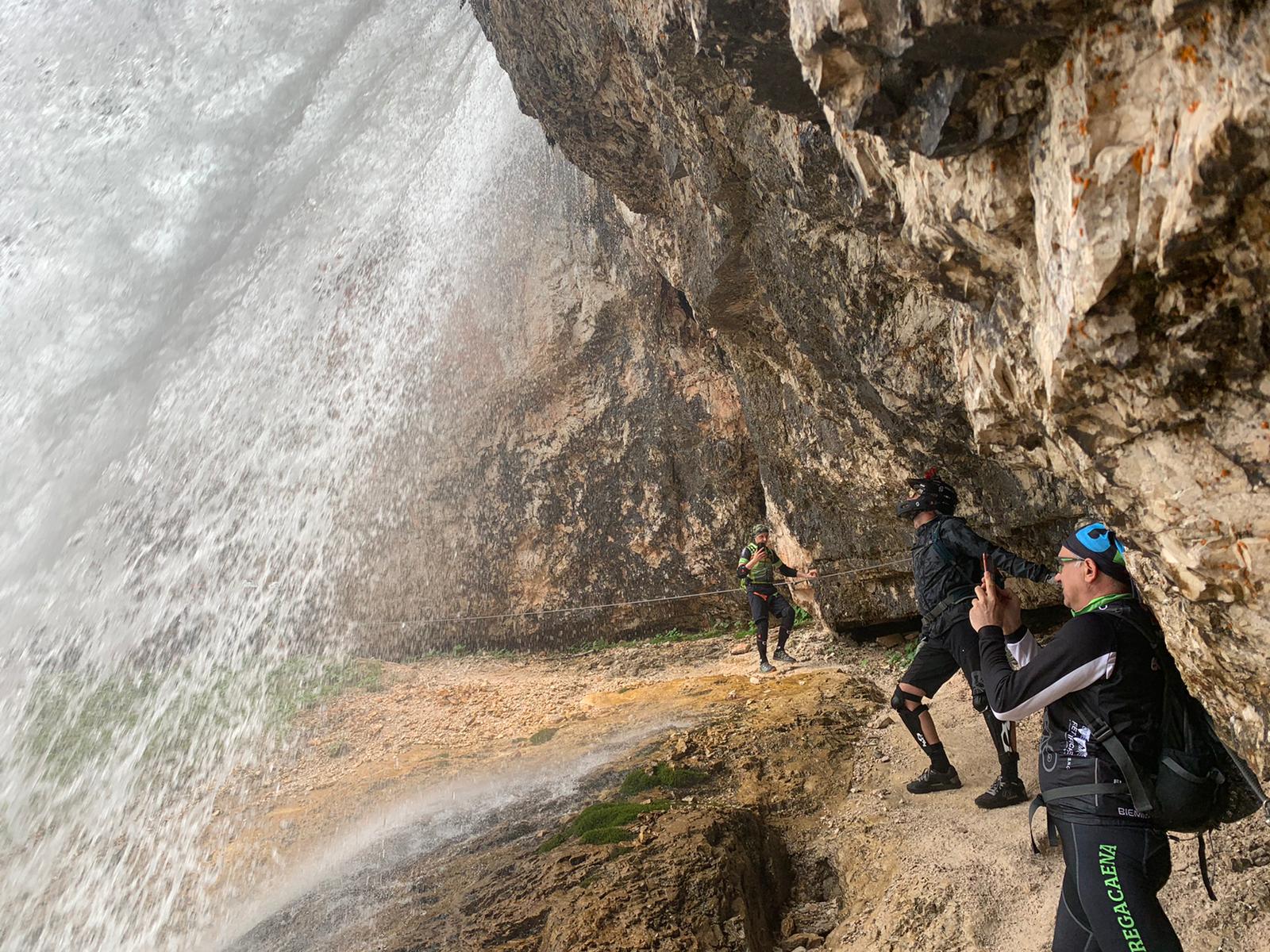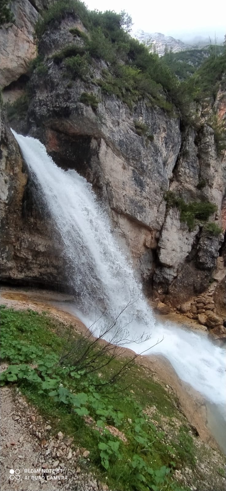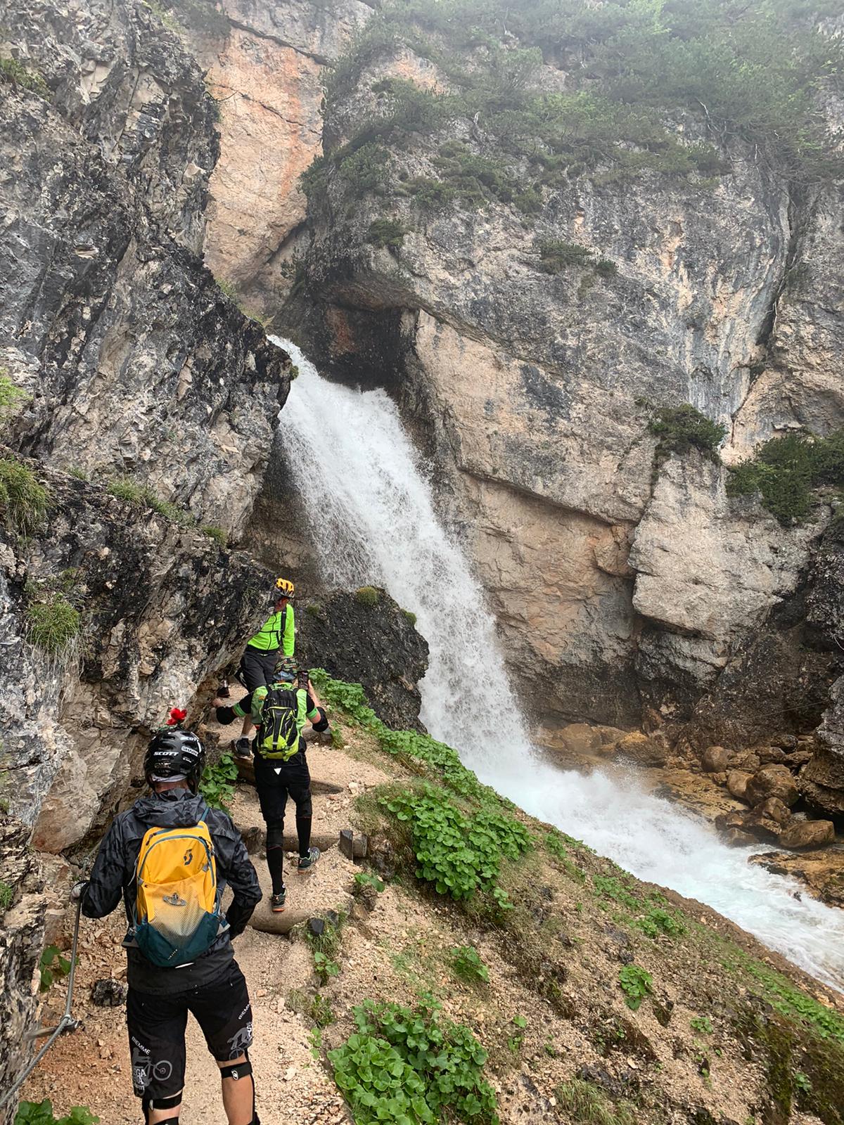 Salendo verso il rifugio Fanes il tempo sembra peggiorare e senza fare tappa proseguiamo in discesa per le cascate di Fanes dove ci fermiamo a vedere lo spettacolo creato dall’acqua!!